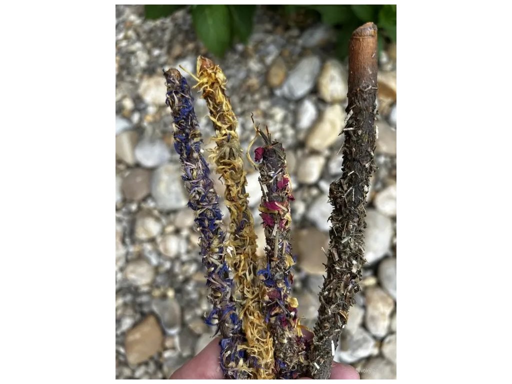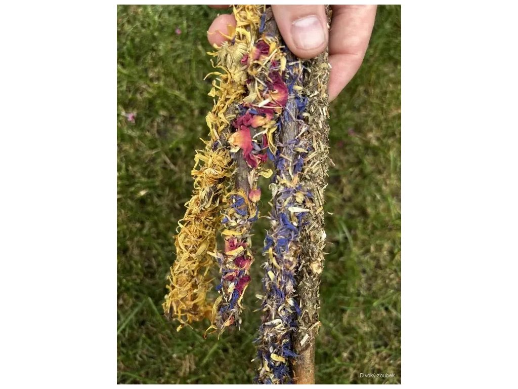 Větvičky jsou mix vrby a jabloně, obalené v bylinkách: růži, chrpě, meduňce a měsíčku.