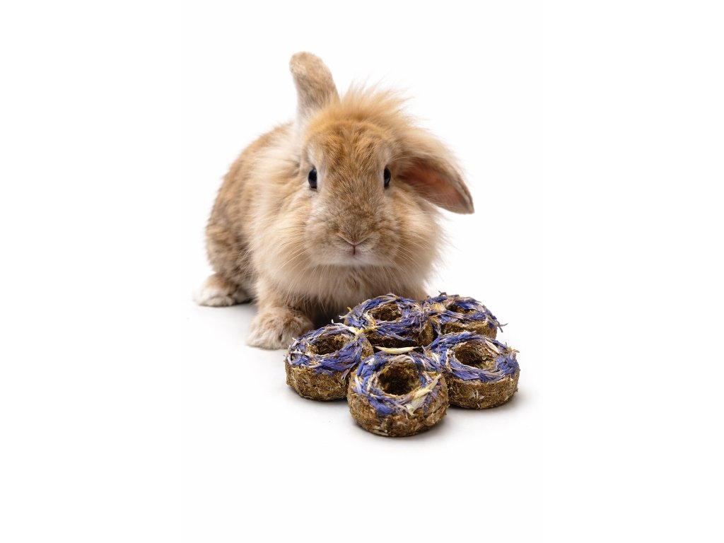Chrpové donuty Divoký Zoubek jsou ručně vyráběné pamlsky z kvalitního sena doplněné o sušenou chrpu. Bez obilovin, bez přidaných barviv a zbytečné chemie – pouze to, co je králíkům přirozené a blízké přírodě.