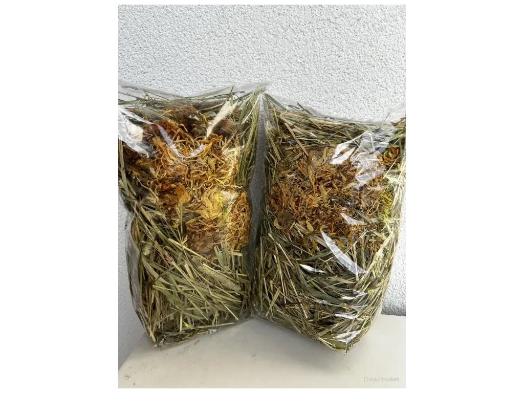 Chutné bylinkové seno s měsíčkem lékařským pro králíky a hlodavce.