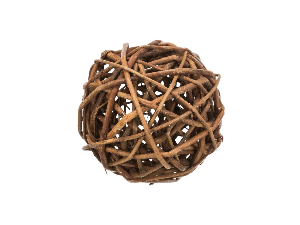Proutěný míček podporuje přirozené chování králíků a hlodavců – okusování, házení, kutálení i hraní si s pamlsky.