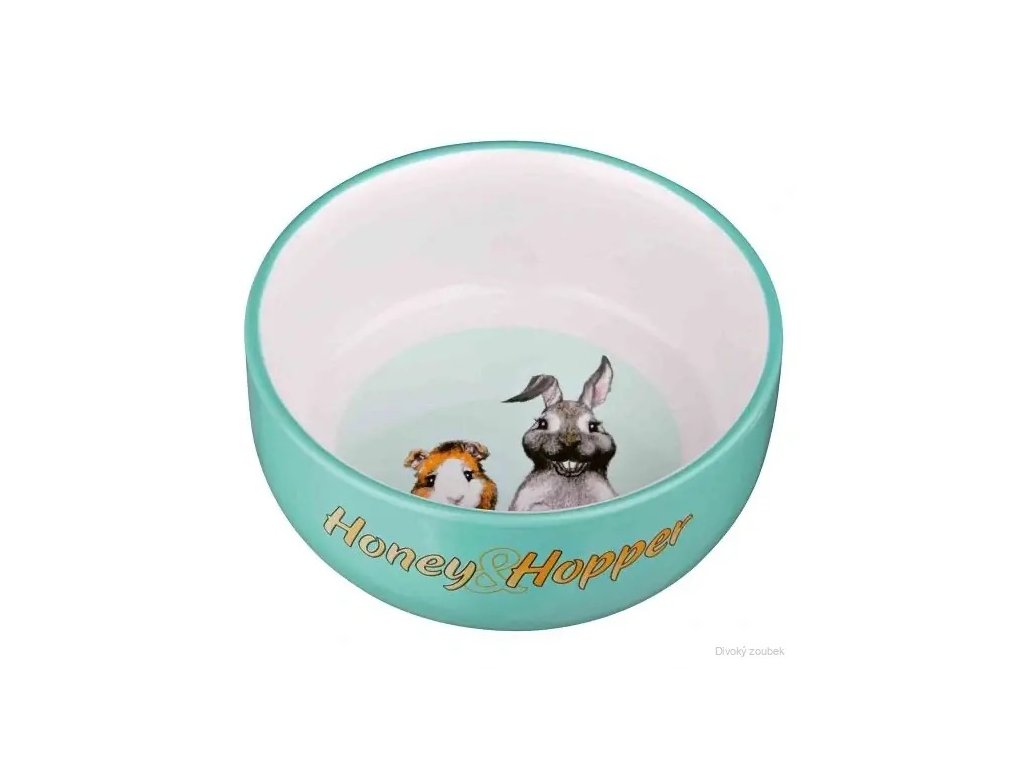 Uvnitř misky najdete roztomilý motiv králíčka a morčete, který dělá z obyčejného krmení malý radostný rituál. Miska je vhodná na vodu, granule i zeleninu.