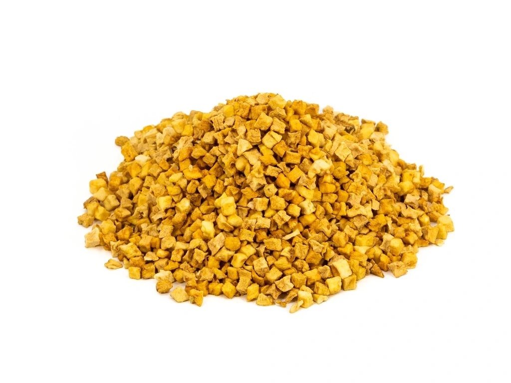 Sušená jablíčka jsou jemné a voňavé mlsání pro králíky a malé hlodavce. Díky šetrnému sušení si uchovávají svou přirozenou nasládlou chuť i vůni a zároveň zůstávají dobře stravitelná. Jablíčka jsou oblíbeným zpestřením krmné dávky a lákavým pamlskem i pro vybíravé mazlíčky.