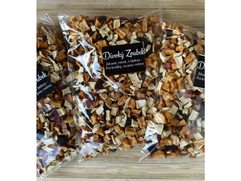 Každý kousek je šetrně sušený, aby si zachoval maximum živin, vůně i chuti. Směs je ideální jako přírodní doplněk ke krmné dávce nebo jako malé denní zpestření.